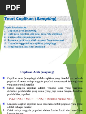 Teori cuplikan dan cuplikan acak. We did not find results for: Check spelling or type a new query. Maybe you would like to learn more about one of these?