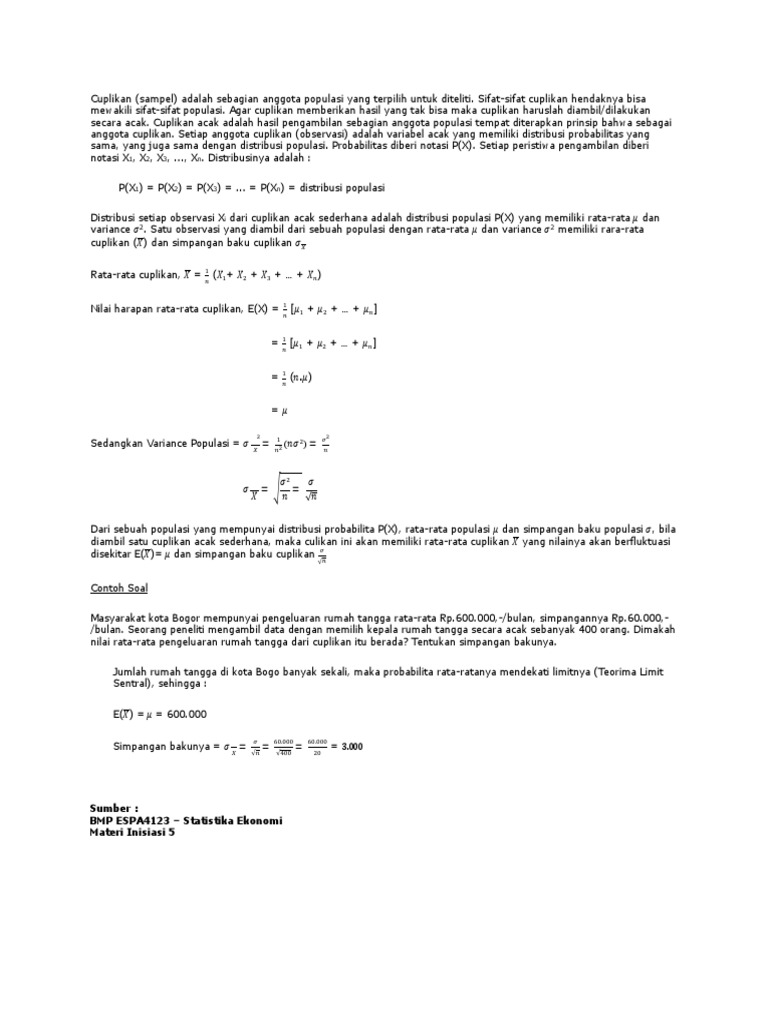 Teori Cuplikan Doc Materi Inisiasi 5 Matakuliah Judul Statistik Ekonomi Espa4123 Teori Cuplikan Penulis Tutor Hendrin H Sawitri Se Course Hero from www.coursehero.com Check spelling or type a new query. We did not find results for: Maybe you would like to learn more about one of these? Teori cuplikan dan cuplikan acak.
