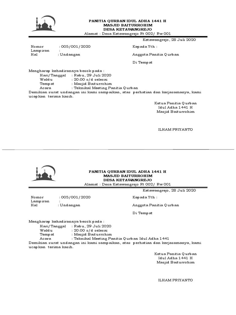 Undangan Panitia Qurban : Contoh Surat Undangan Pembubaran Panitia Qurban : Contoh undangan pembentukan panitia qurban 2019 serbandeso blog.